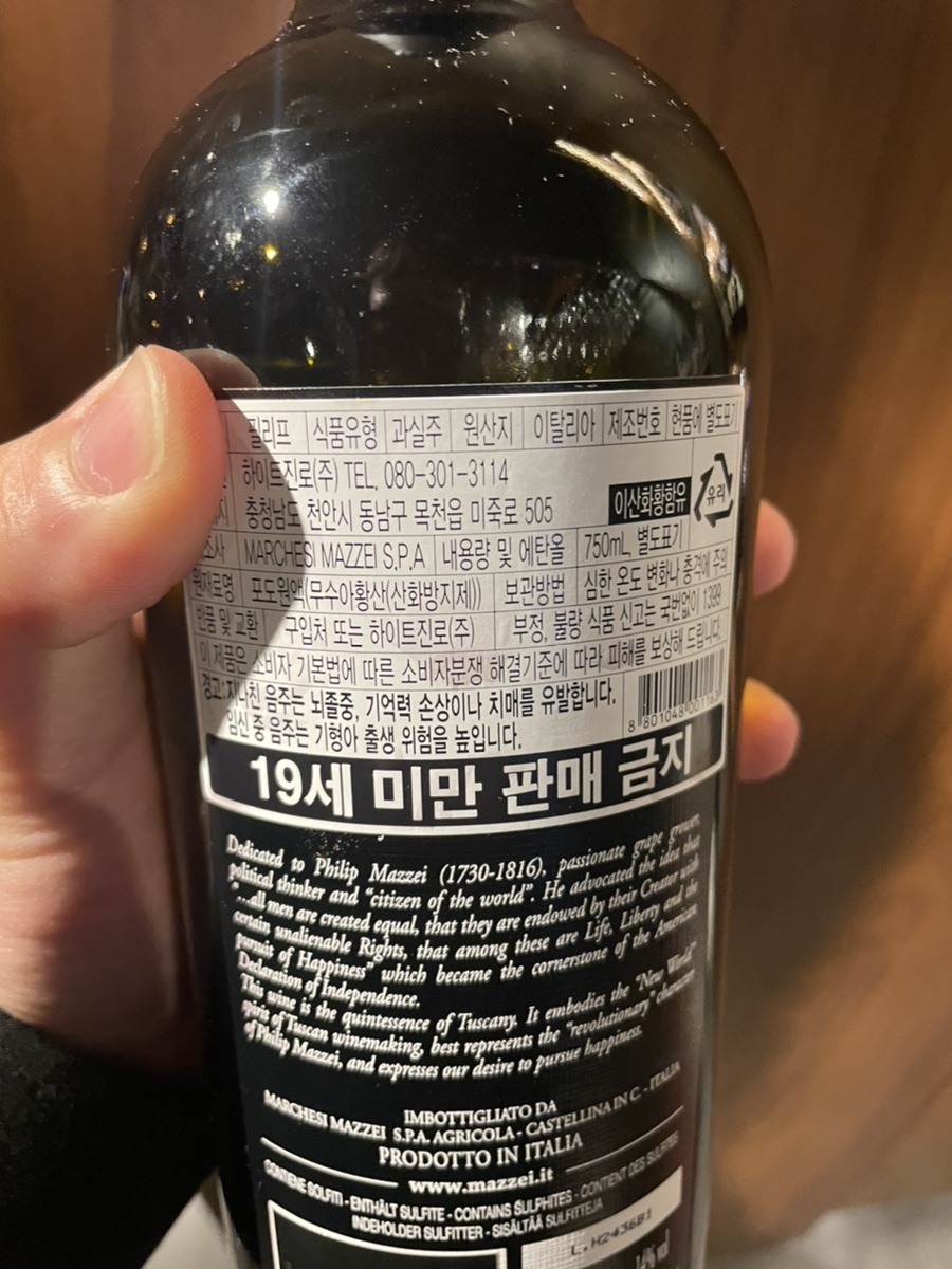 색깔은 이쁜 가넷색을 띄우며 과실향이 나서 첫인상은 좋았던 와인이다.