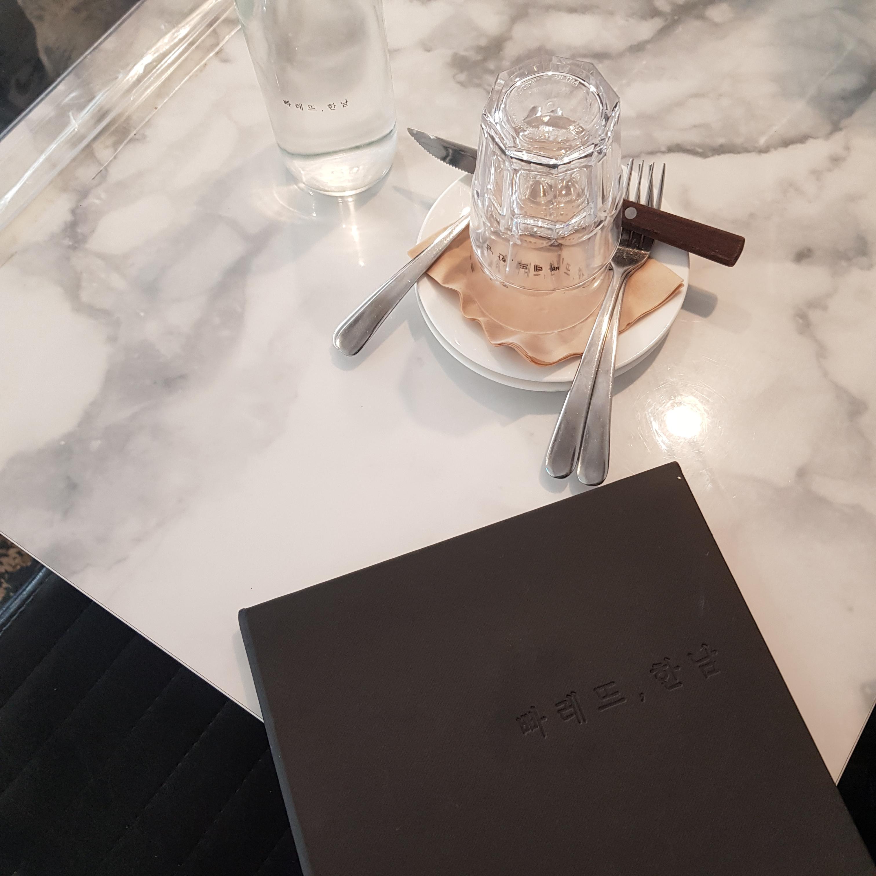 저 물병과 메뉴판에 적혀있는 빠레뜨, 한남이